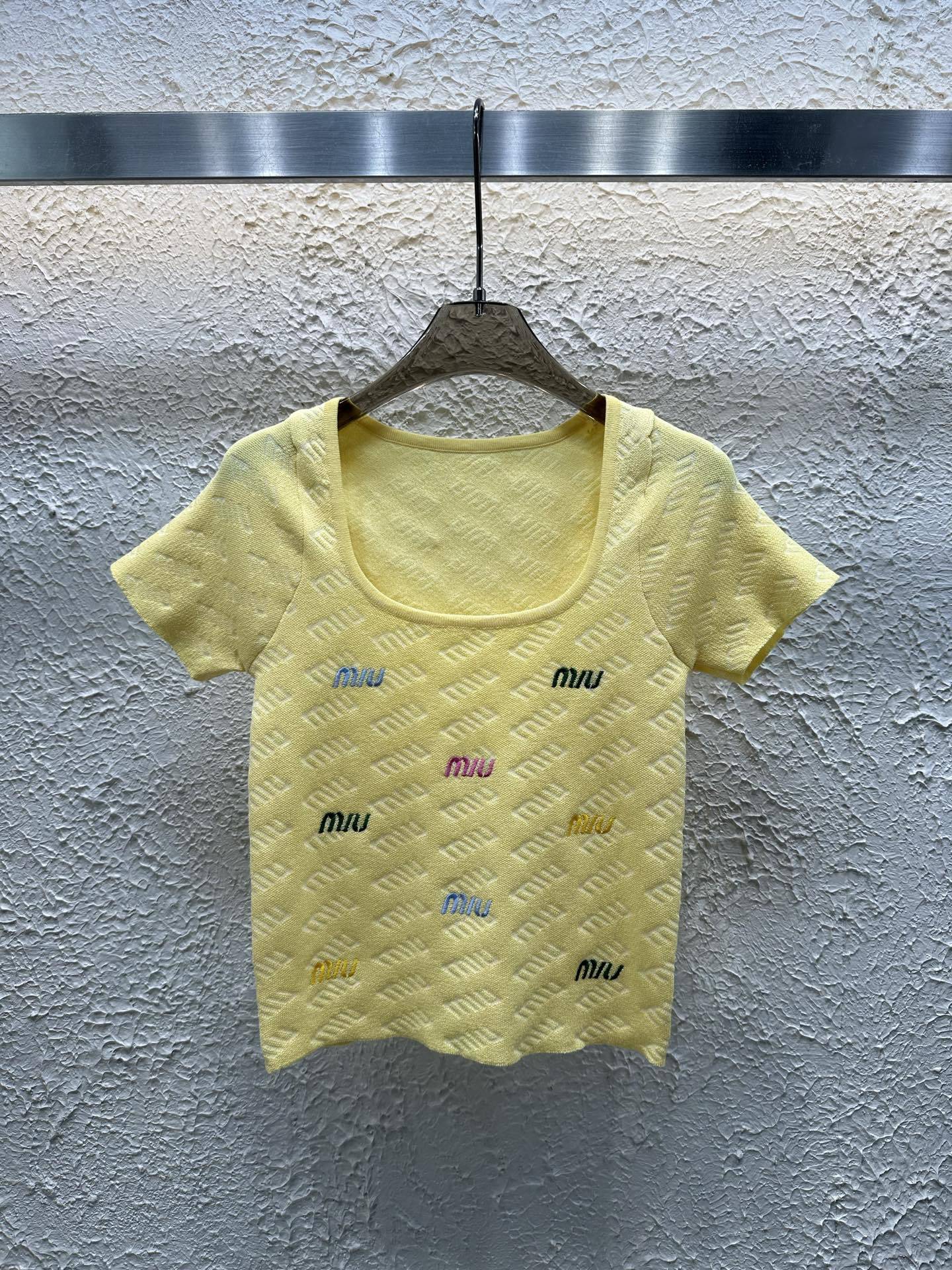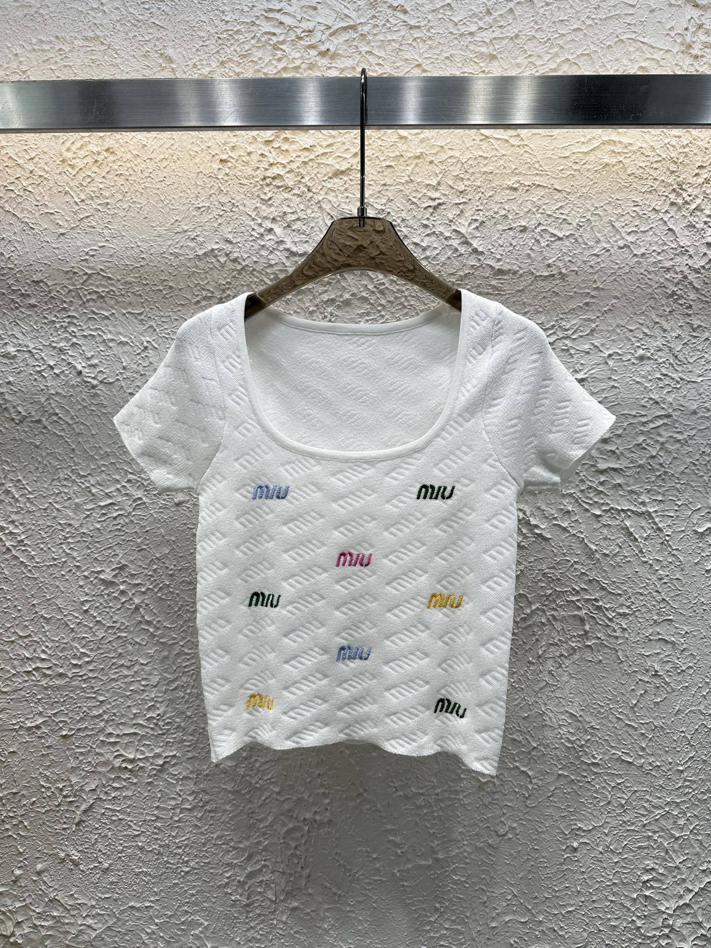- Product Name: Spring and summer new embroidered letter U-neck knitted short sleeved shirt